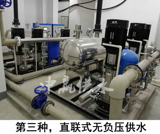 如果地下室沒有儲(chǔ)水池或不銹鋼水箱,而是直接通過(guò)中贏無(wú)負(fù)壓供水設(shè)備疊加市政管網(wǎng)已有壓力進(jìn)行加壓的,由于它是與自來(lái)水管道是串聯(lián)的,密封性非常好,所以不會(huì)產(chǎn)生二次污染,大家可以放心使用(自來(lái)水--無(wú)負(fù)壓設(shè)備--用戶)。第三種供水方式